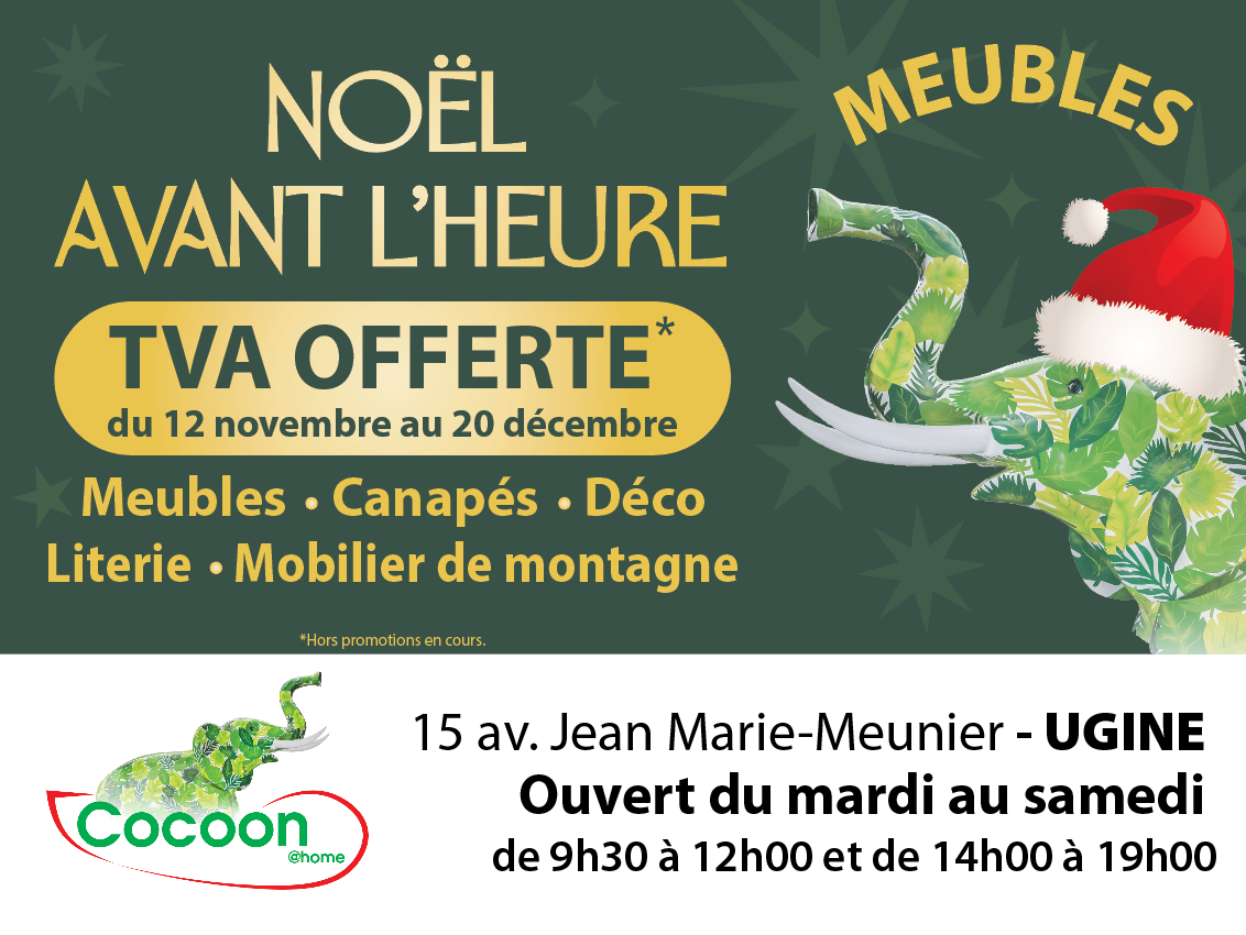Situé à l’entrée d’Ugine, côté Albertville, Meubles Cocoon vous accueille du lundi au samedi dans un show-room de 600 mètres carrés entièrement dédié à l’univers de l’ameublement pour la maison. Vous ne pourrez pas louper notre mascotte, Hannibal du Charvin, qui indique fièrement l’entrée du parking !